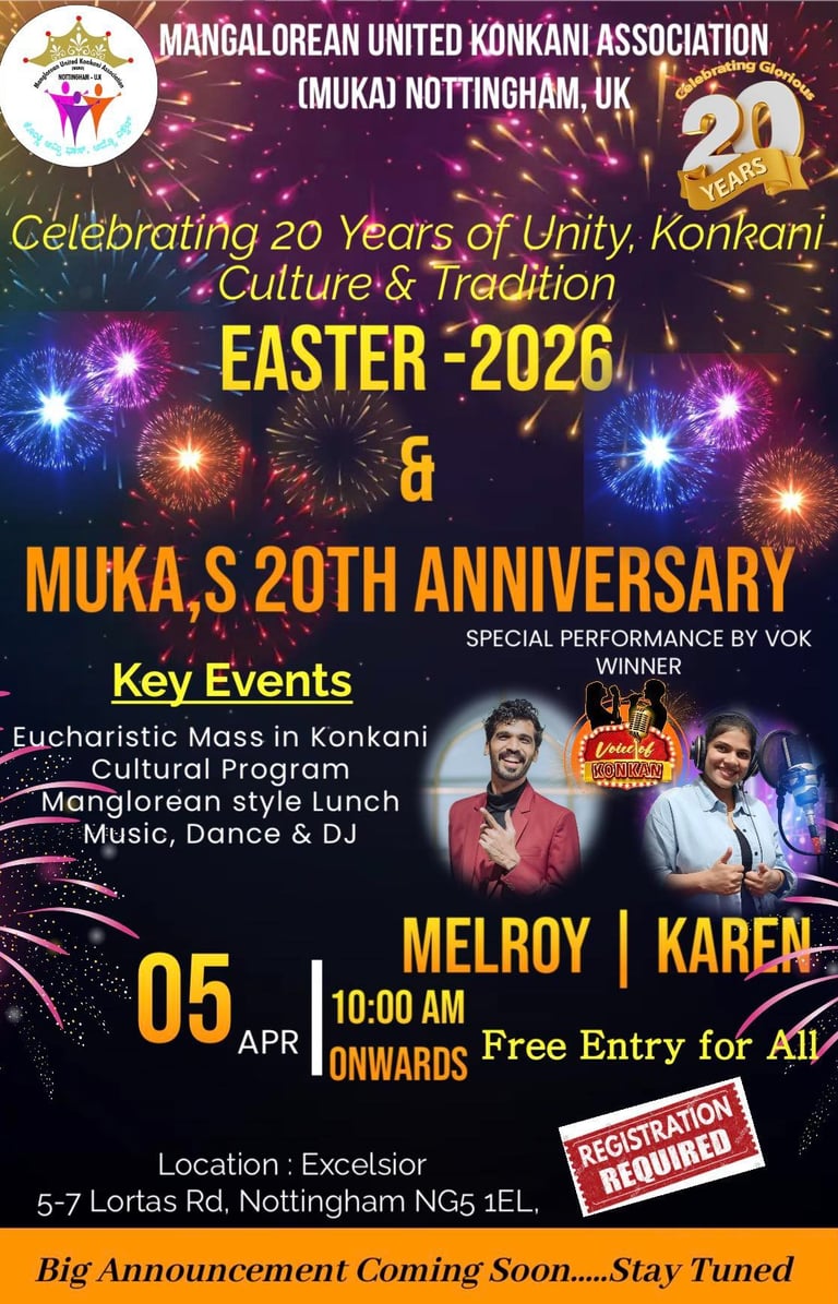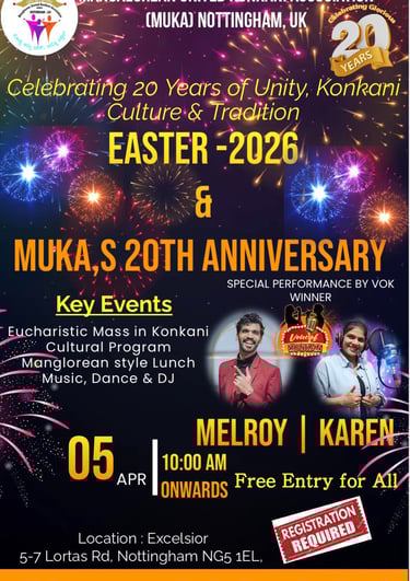 The Mangalorean United Konkani Association (MUKA) is a vibrant community that brings together Konkani-speaking families in the UK. Founded in 2006, MUKA serves as a cultural, social, and spiritual hub for individuals from Nottingham, Derby, and beyond. Through charity work, cultural events, and youth programs, we celebrate our rich heritage while fostering a strong sense of belonging. More than just an association, MUKA is a family—a place to connect, grow, and create lasting memories.